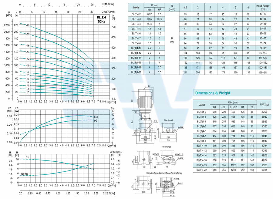 + Máy bơm ly tâm trục đứng đa tầng Inox BL là loại máy bơm ly tâm đa tầng cánh inox, không tự mồi, cấu trúc dạng đứng đa tầng.