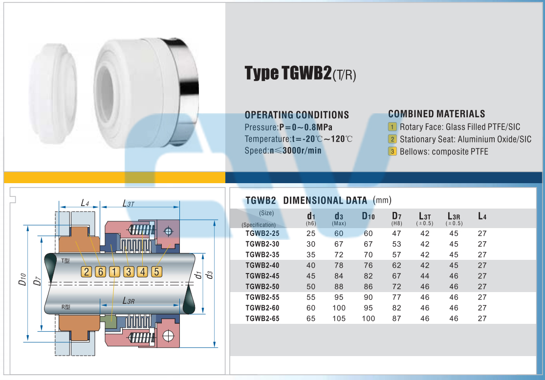 Phớt cơ khí, phớt máy bơm hóa chất WB2 làm việc trong môi trường hóa chất đậm đặc, phớt máy bơm hóa chất chịu được các hóa chất ăn mòn mạnh mà cao su không chịu được, được sử dụng nhiều trong ngành dệt, dùng để bơm các dung môi nhuộm, tẩy rửa, phớt sử dụng cho các máy bơm sơn…