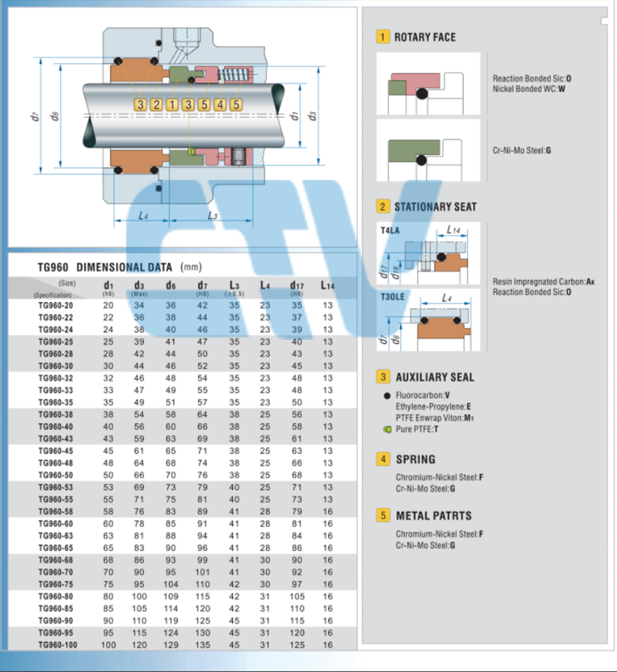 Phớt máy bơm trục đứng Paragon PV3-100 Type GLF, GFE (phớt cơ khí)